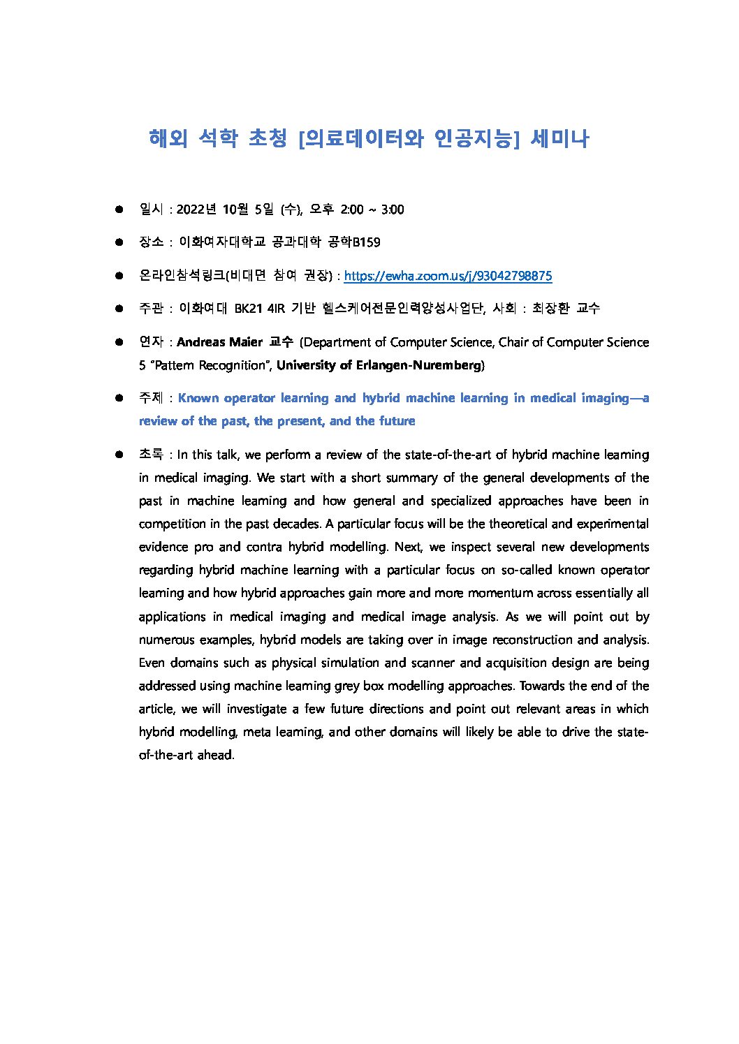 연수 기간 : 2022/09/15 ~ 2022/10/26 (40박 41일) 연수 기관 : Friedrich-Alexander-Universität Erlangen-Nürnberg 출장자 : 김기현, Viriyasa Thanaporn – 최장환교수님 연구실 박사과정생